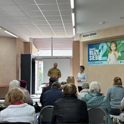 Spotkanie poprowadził mł. kpt. Jan Bielawski, który przybliżył uczestnikom zagrożenia związane z pożarami oraz zatruciami tlenkiem węgla w domach i mieszkaniach. Uczestnicy dowiedzieli się m.in.: